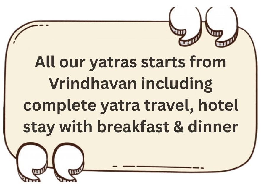It is a revered Hindu pilgrimage covering essentially 4 dhams which includes vrindhavan, mathura, gokul & goverdhan ji dham. This region, comprises sacred temples of Mathura, Vrindavan, Govardhan, Barsana, Gokul, Nandgao, braj badrinath, braj kedarnath, braj gangotari, braj yamnotri is where Lord Krishna is believed to have spent his childhood, youth and leela’s. The pilgrimage is more than just a physical journey; it's a completely spiritual one. It is said that by undertaking this yatra, devotees can purify their souls and be liberated from the cycle of 8.4 million life forms mentioned in Hindu scriptures. The route takes pilgrims through 12 forests, 24 gardens, and 20 ponds (kunds), each holding a story related to Krishna's divine pastimes. This entire pious yatra from day of arrival to vrindavan and departure is covered in 7 days.